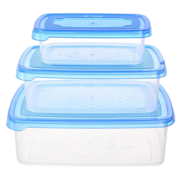 طقم علب ثلاجة بلاستيك اوميجا الوطنية، 3 قطع - شفاف ازرق