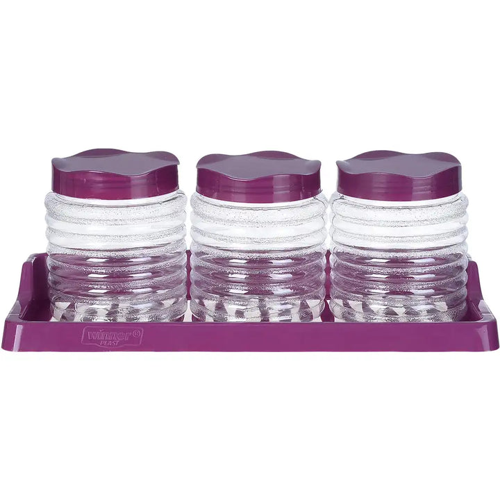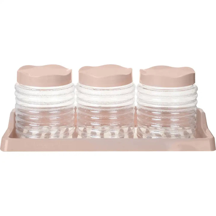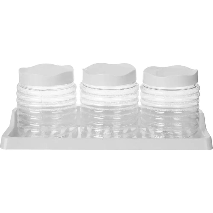 مكون من ثلاثه برطمانات وقاعده بلاستيكيه