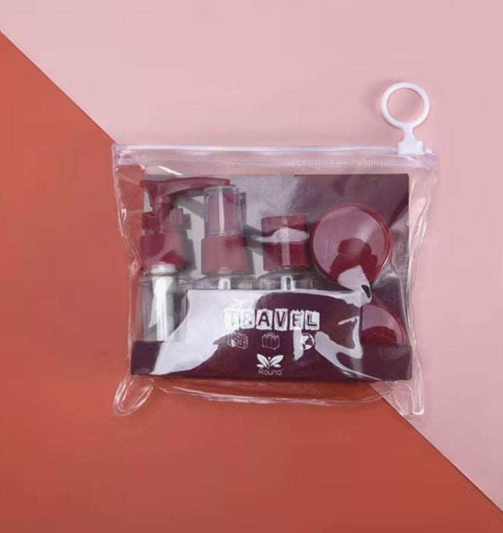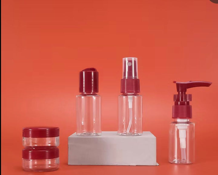 مجموعة زجاجات بخاخ بلاستيكية صغيرة لمستحضرات التجميل للسفر 5 في 1