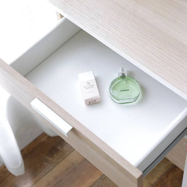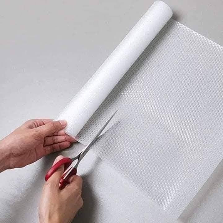 رول عملي لتبطين الأدراج والدواليب، شفاف بنقشة بسيطة، يحمي من السوائل وسهل التنظيف.