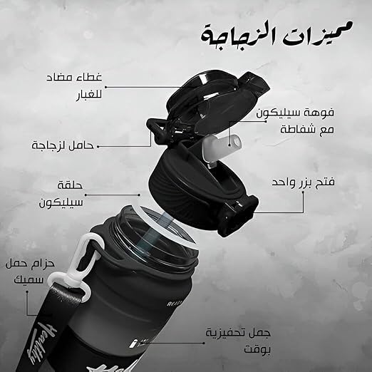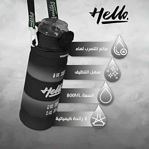 - تتميز زجاجة الماء هذه بسعة كبيرة تبلغ 1000 مل ، مما يجعلها مثالية للترطيب طوال اليوم. يضمن حجمه حصولك على كمية كافية من الماء أثناء التدريبات أو الأنشطة الخارجية أو أي روتين يومي دون إعادة تعبئة متكررة.