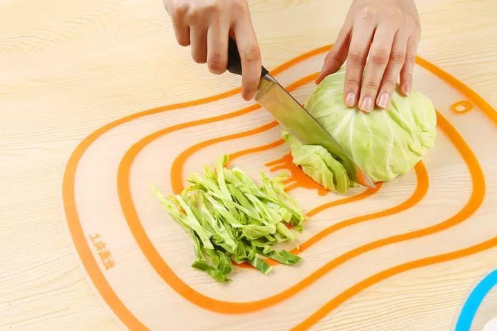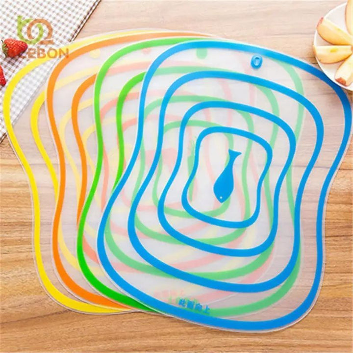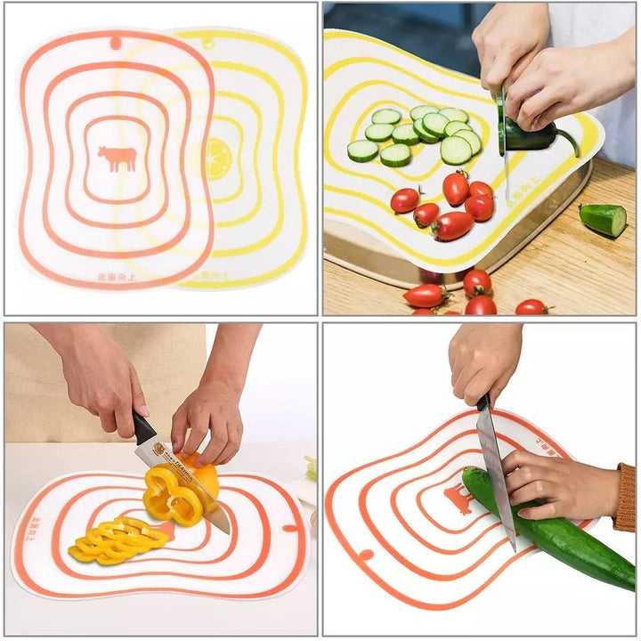 طقم عملي يحتوي على ألواح مرنة بألوان مختلفة ورموز مخصصة لكل نوع طعام، لسهولة التنظيم والنظافة أثناء التقطيع.