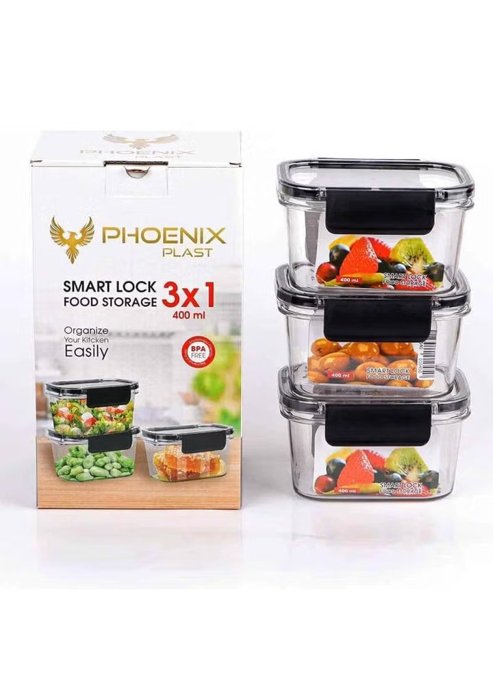 طقم علبة حفظ طعام للثلاجة من الاكريليك 3 قطع مع قفل محكم الغلق وجوانب سيليكون-فينيكس