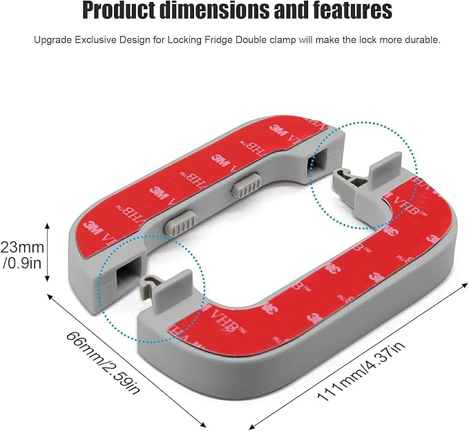 - سهل الفتح والإغلاق: تشغيل بيد واحدة، عن طريق سحب زري القفل وفتح باب الثلاجة في نفس الوقت. عند إغلاق باب الثلاجة، يتم قفل القفل تلقائيًا، ولا توجد خطوات إضافية. تصميم خاص بزر مزدوج يجعل من الصعب على الأطفال فتحه، ولكن من السهل على البالغين فتحه بيد واحدة.