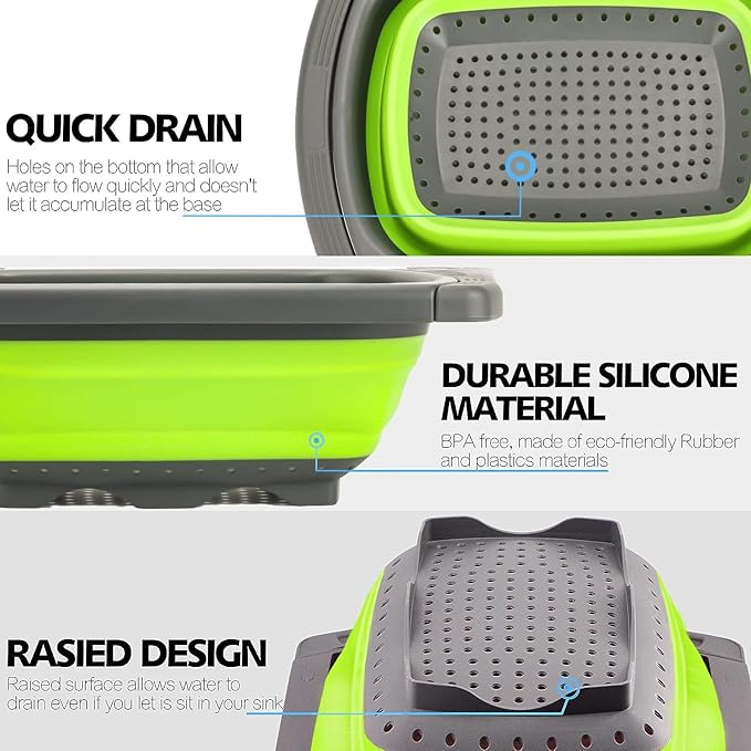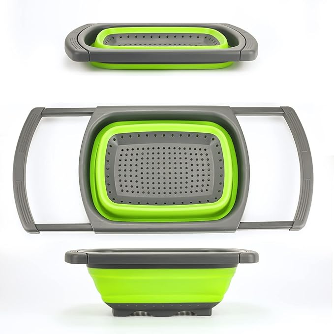 مصفاة مطبخ قابلة للطي تثبت فوق الحوض من ابتيه، سلة لغسل الخضروات والفواكه والمكرونة المطبوخة والأطباق الجافة،