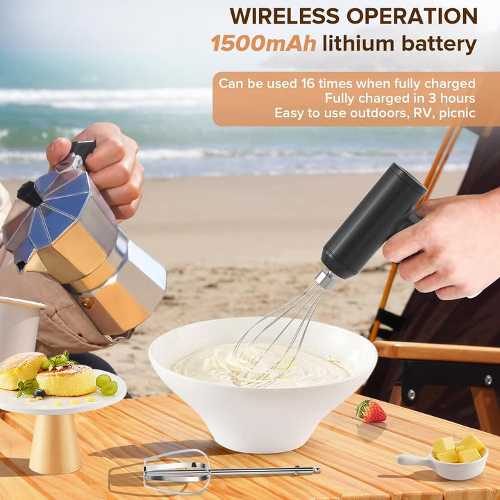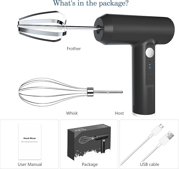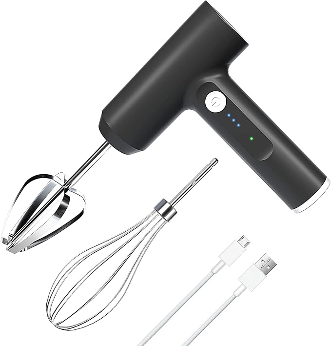 مضرب يدوي لاسلكي كهربائي من ال اتش بي دي، قابل لإعادة الشحن بمنفذ USB مع 3 سرعات بتحكم ذاتي، مصنوع من فولاذ مقاوم للصدأ 304 بمضرب سلك للهدايا وعمل تارت الزبدة والكيك والكوكيز