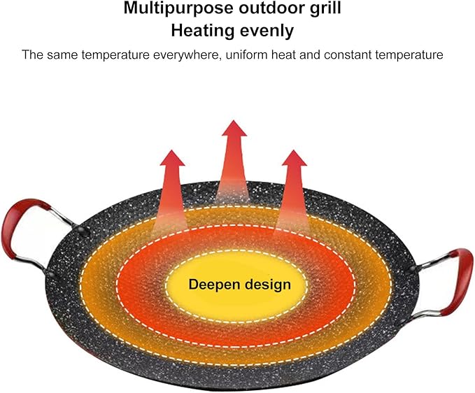 • الحديد والحجر: صينية الشواء الكورية هذه مصنوعة من مادة الحديد والحجر الممتازة، ولن تنتج مركبات الفلورين الضارة.